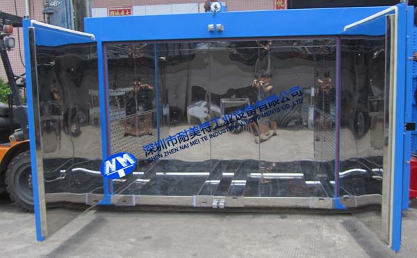 10、內膽材質采用鏡面304#全不銹鋼板,氬弧焊滿焊,防止機臺本身產生灰塵;外箱用2.0mm冷扎板高溫粉體烤漆;